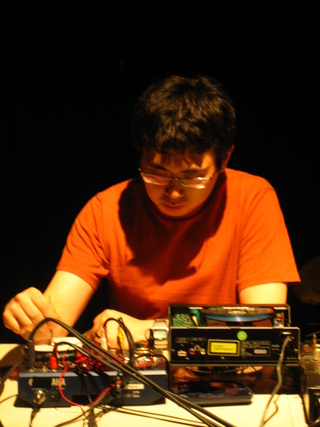 Choi Joonyong started making noise with Hong Chulki as Astronoise from 1996. He plays electronic instruments such as opened cdplayers, reel tape player and speakers. He is participating in harsh noise band called Master Musik as well as playing solo, and made 3 solo albums with error sounds from cdplayers, He is running a record label called Balloon & Needle introducing experimental music from Korea.